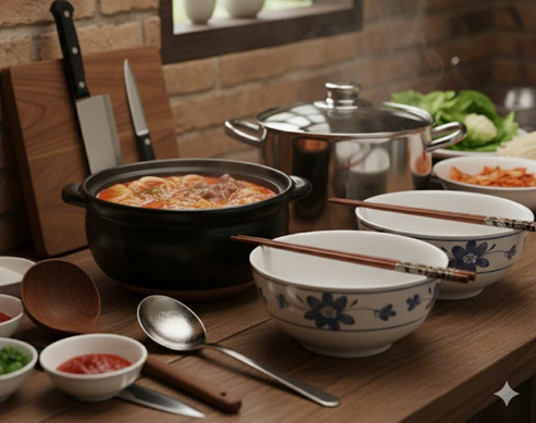 Khi nấu mì cay thì cần phải chuẩn bị các dụng cụ dưới đây.