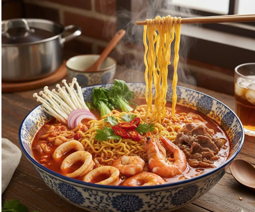 👉 Ngoài công thức hải sản và bạch tuộc, bạn có thể biến tấu theo sở thích và nguyên liệu có sẵn của mình để nấu mì cay như là phô mai béo ngậy hoặc nấu mì cay thập cẩm nhiều topping để đa dạng hương vị theo sở thích riêng mình.